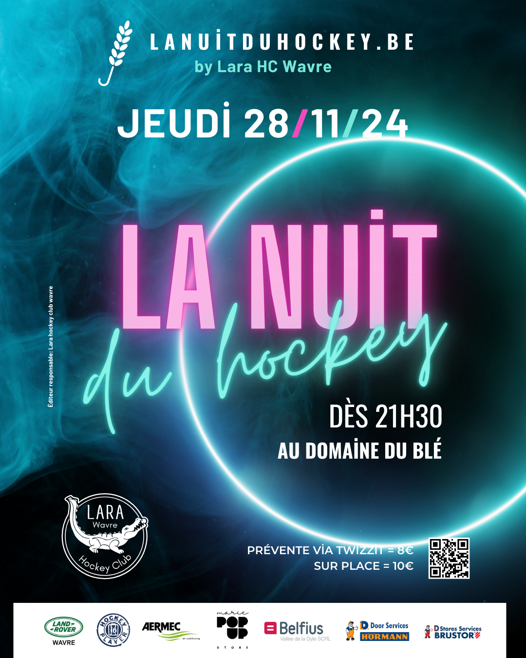 Days : Hours : Minutes : Seconds LA NUIT DU HOCKEY SAVE THE DATE 28 Novembre 2024 Comment participer à cet évènement ? Rien de plus simple, faites le nous savoir via notre formulaire d’inscriptions Inscriptions Vous avez des questions? contactez-nous Envoyer-nous un e-mail contact@lanuitduhockey.be Appelez-nous +32 477950671